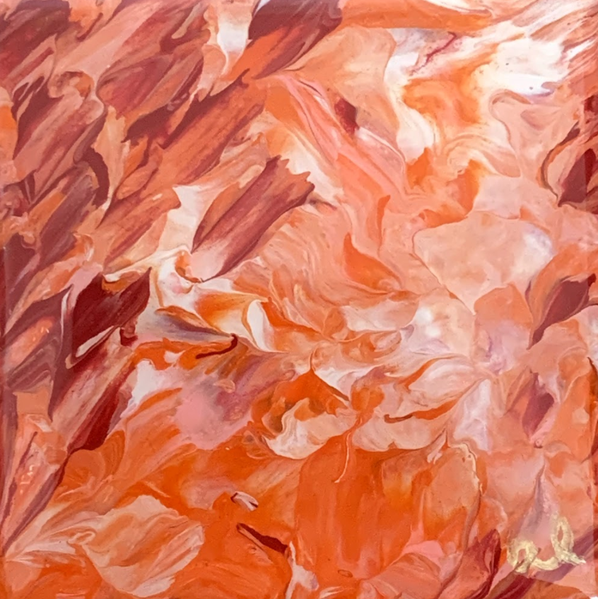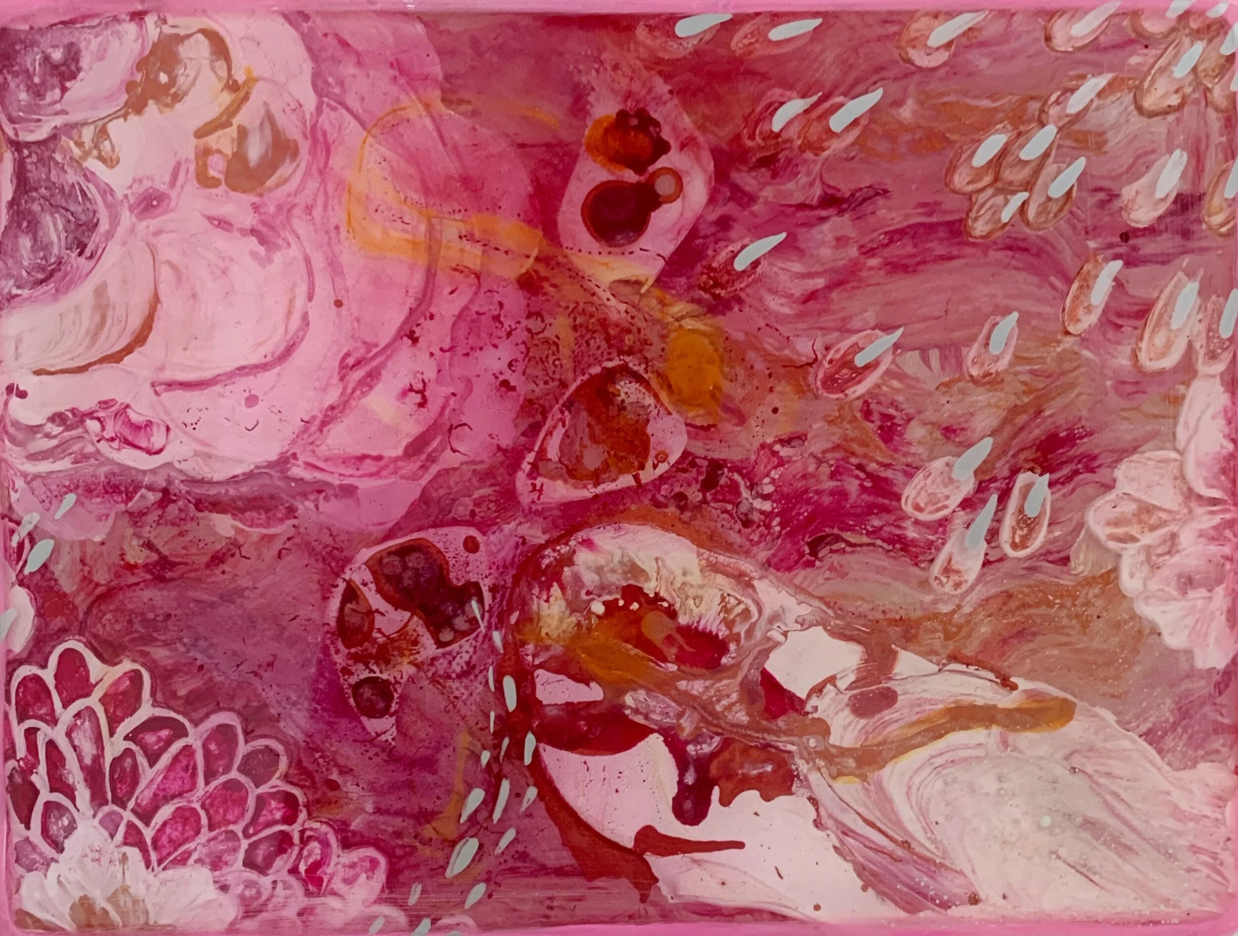 Acrylic paint, ink, and resin on canvas