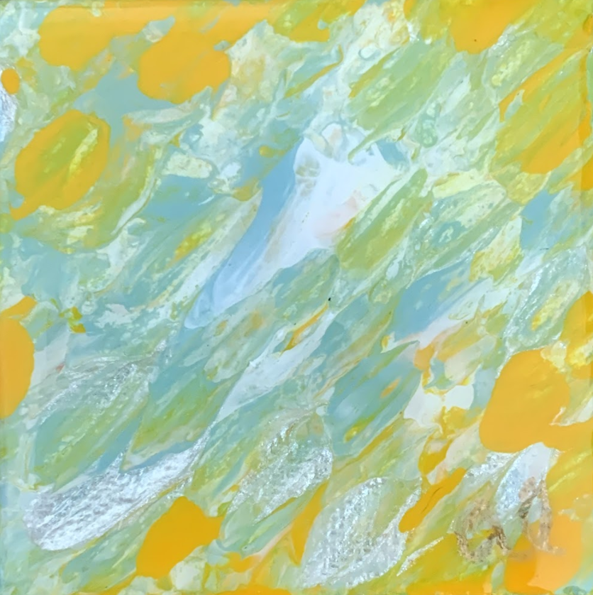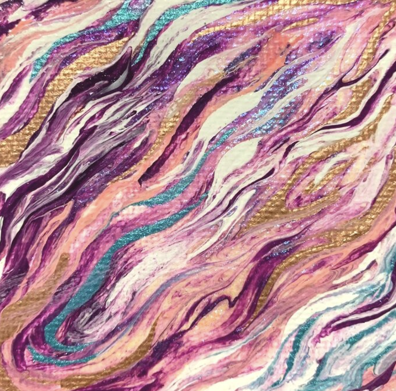 Acrylic paint, resin, and glitter on canvas